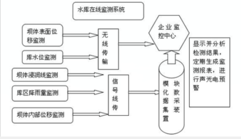水情自动测报及大坝安全监测系统运用于各水库信息化建设中,对水库水雨情、墒情、蒸发、流量、水量等水库参数进行实时监测;并对水库大坝内部浸润、渗流、表面变形、位移等监测。采用现代科技手段对监测信息进行实时遥测、传送及处理,综合水文、电子、传感器和计算机等多学科的有关成果,用于水文测量和计算,提高水库水情测报速度和洪水预报精度。通过计算机实现大坝观测数据自动采集、处理和分析计算,对大坝的正常运行作出判断并分级报警。