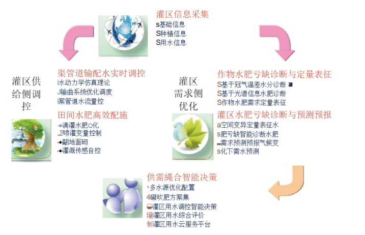 按照智慧灌区建设要求开展灌区信息化建设,围绕灌区现代化发展要求以及灌区中心工作和业务需求,充分利用新一代信息技术聚焦灌区江河渠沟调度、工程运行、智能灌溉、应急处置、便民服务等方面,构建灌区江河渠沟水系、水利基础设施体系、管理运行体系三位一体的网络平台,建设各层级、各专业和相关行业的大数据,构建业务支撑、决策支持、公共服务的大系统,引领灌区现代化发展。